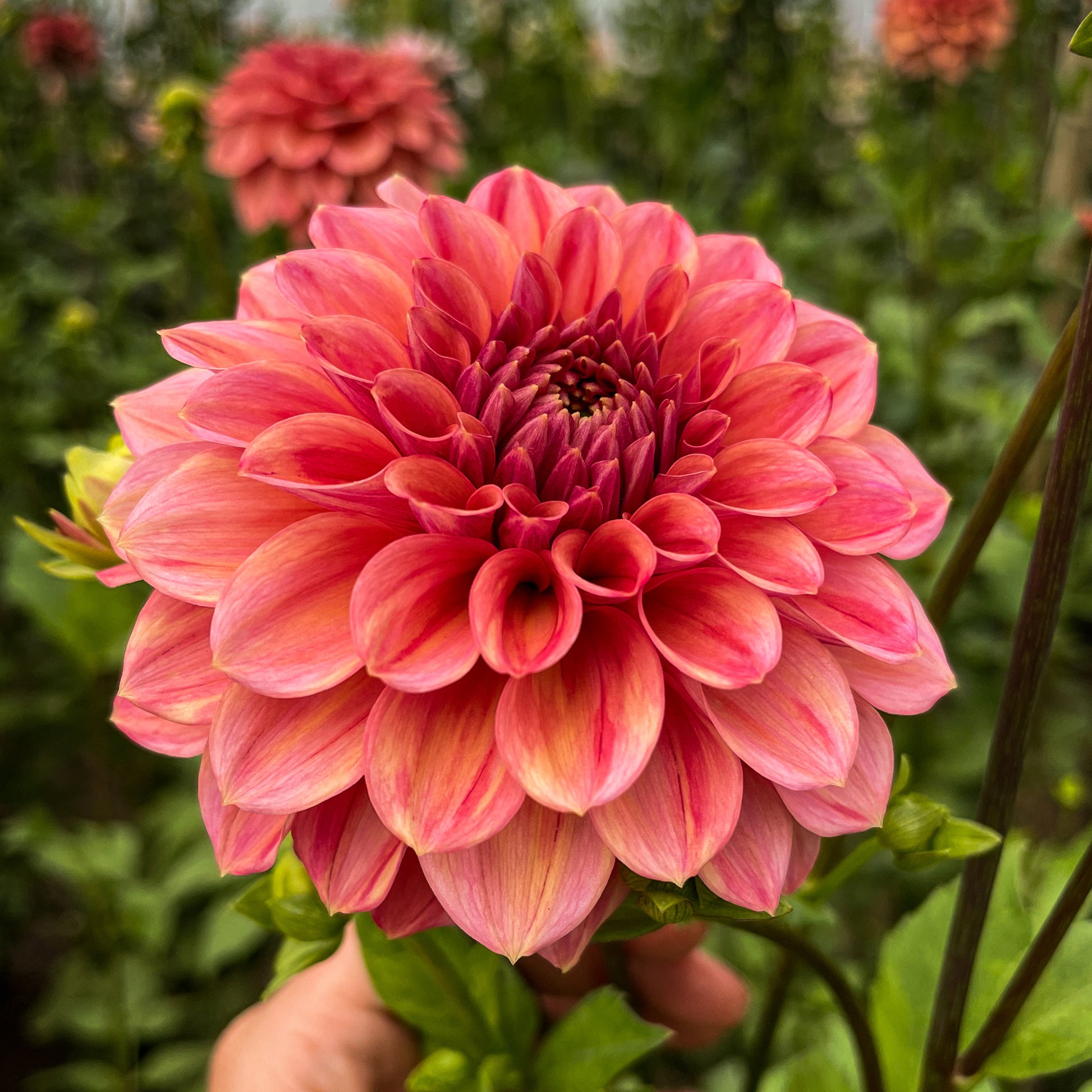 A true workhorse in the garden. This beautiful ball dahlia churns out coral blooms with long sturdy stems. Beautiful in the vase.